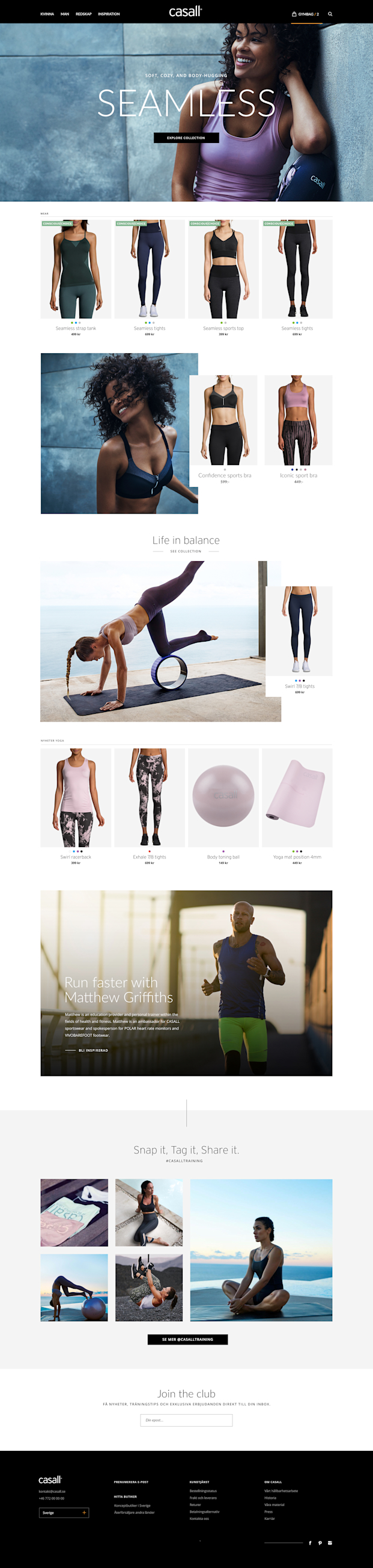 Casall's digital presence has been lifted to the next level. Through a comprehensive presdudy and design process with the end user in focus, we have created the best possible user experience. In order to give the user a deeper understanding of Casall's products, the design is built round an intuitive structure with many inspirational elements and a new look&feel.